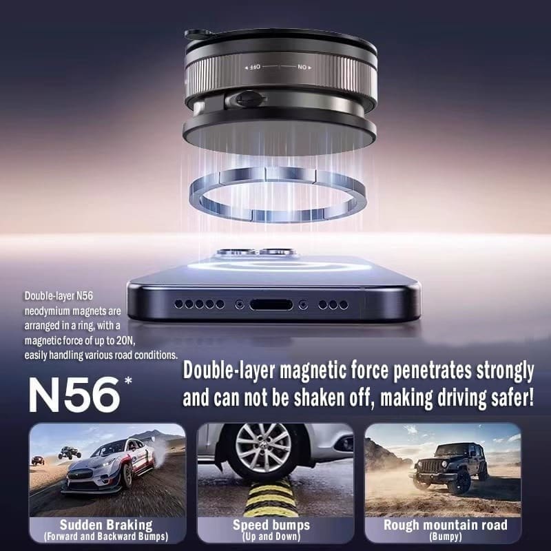 Strong Magnetic Grip: Equipped with high-strength magnets to keep your phone steady and secure during sharp turns or rough roads.
