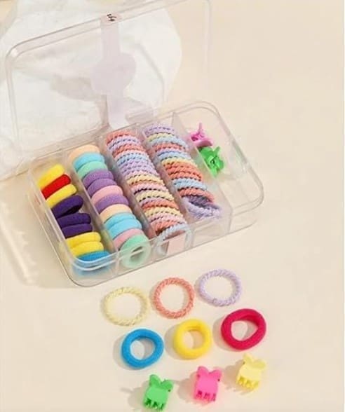 Mini box hair rubber bands for kids are a set of small, stretchy hair ties that are specifically designed for children’s hair. They come in a variety of bright and fun colors, making them an attractive accessory for kids to wear.