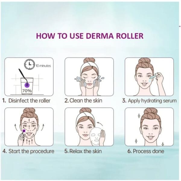 INSTRUCTIONS: Avoid prolonged sun exposure for at least 24 hours after treatment. Disinfect or Sanitize the roller with warm water or alcohol after each use.